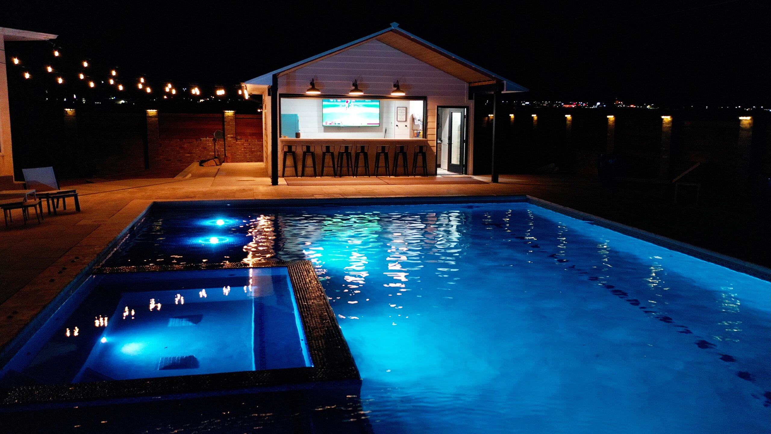 Swimming Pool and Spa Combo at Night - Sedalia, CO